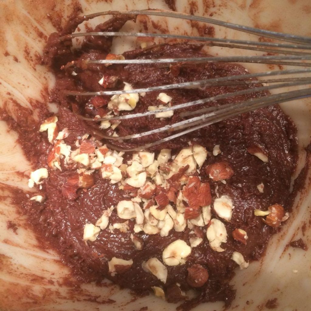 1. Crush the Hazelnuts using a rolling-pin or pestle and mortar if you have one and stir them into the mixture.
